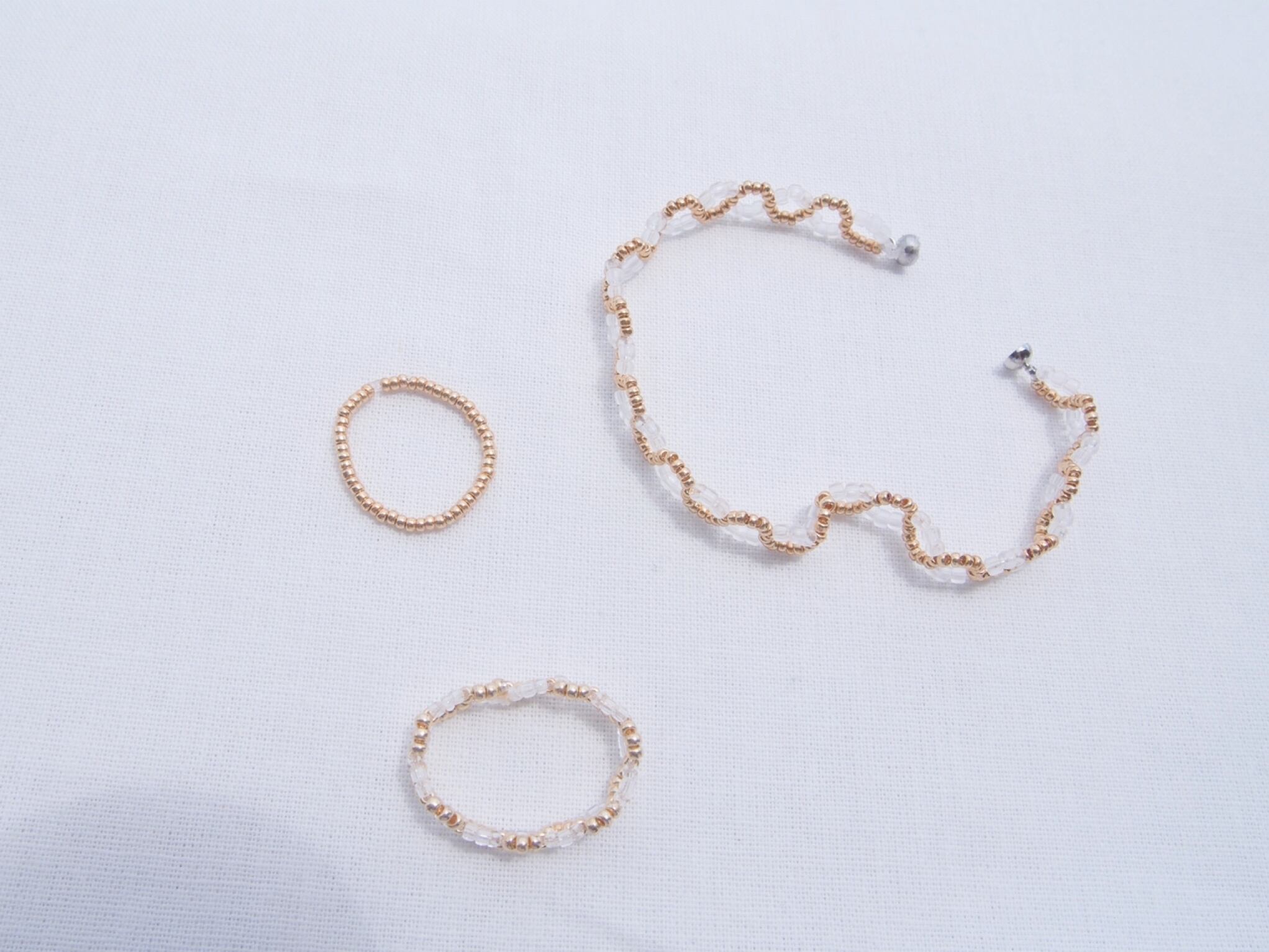 ⚫︎ ゴールド&クリアー 波モチーフ ビーズリング 8〜10号程