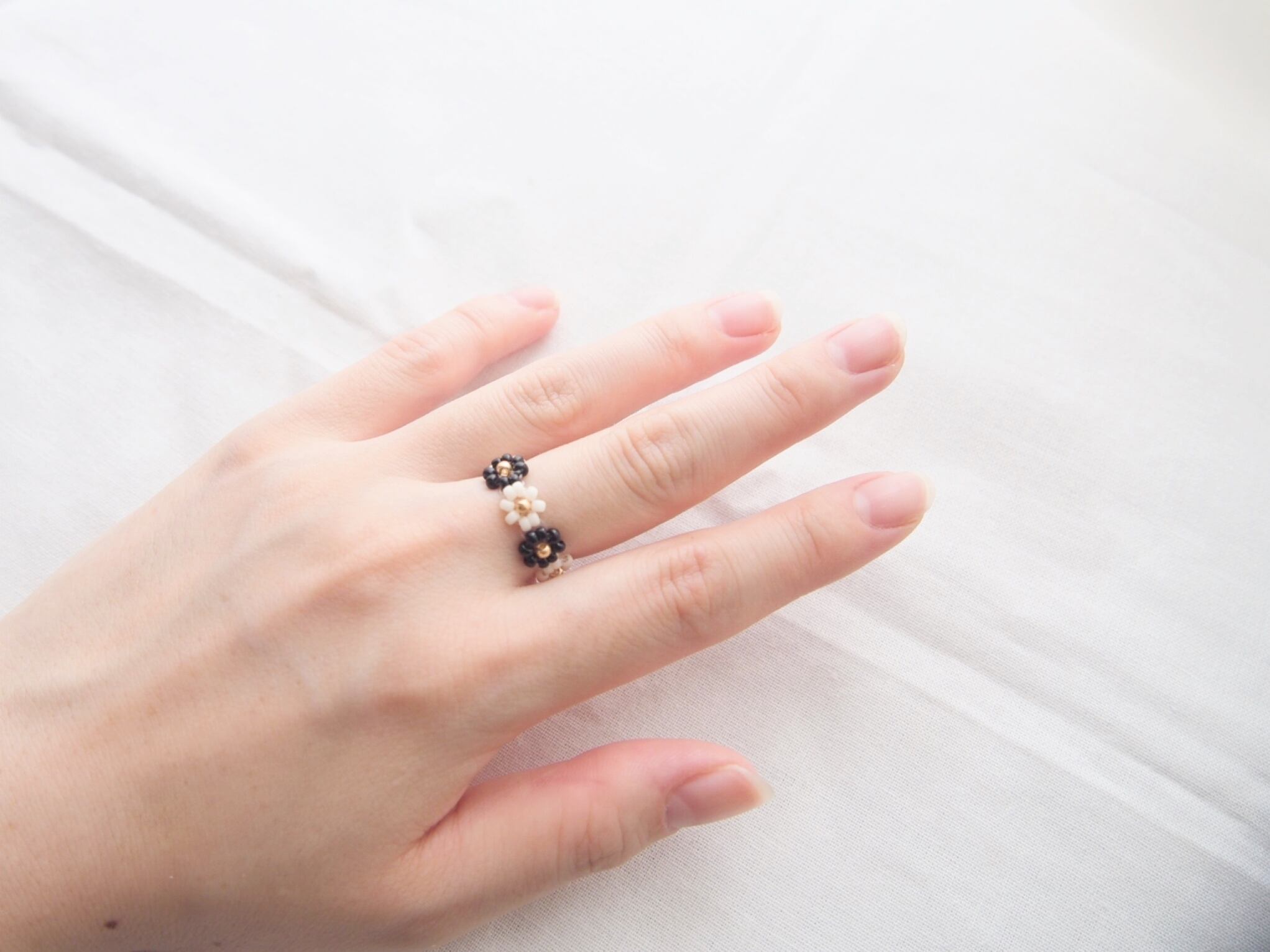ビーズリング ハンドメイドアクセサリー 韓国雑貨 韓国アクセサリー 韓国コスメ 韓国ファッション 韓国インテリア ビーズアクセサリー フラワーモチーフ パールリング パールアクセサリー シンプルアクセサリー シンプルアクセ レトロ レトロアクセサリー シルバー デイジー マーガレット Twice BTS army kpop seventeen nct ブラックピンク セブチ バンタン アーミー カラット プレゼント お揃い 誕生日 ハロウィン クリスマス イベント モノトーン 白黒 パンダ