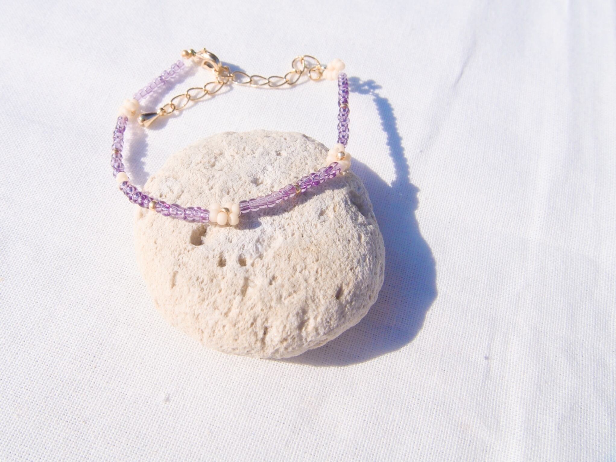 ビーズブレスレット 《 retro purple 》 クリアーパープル 韓国