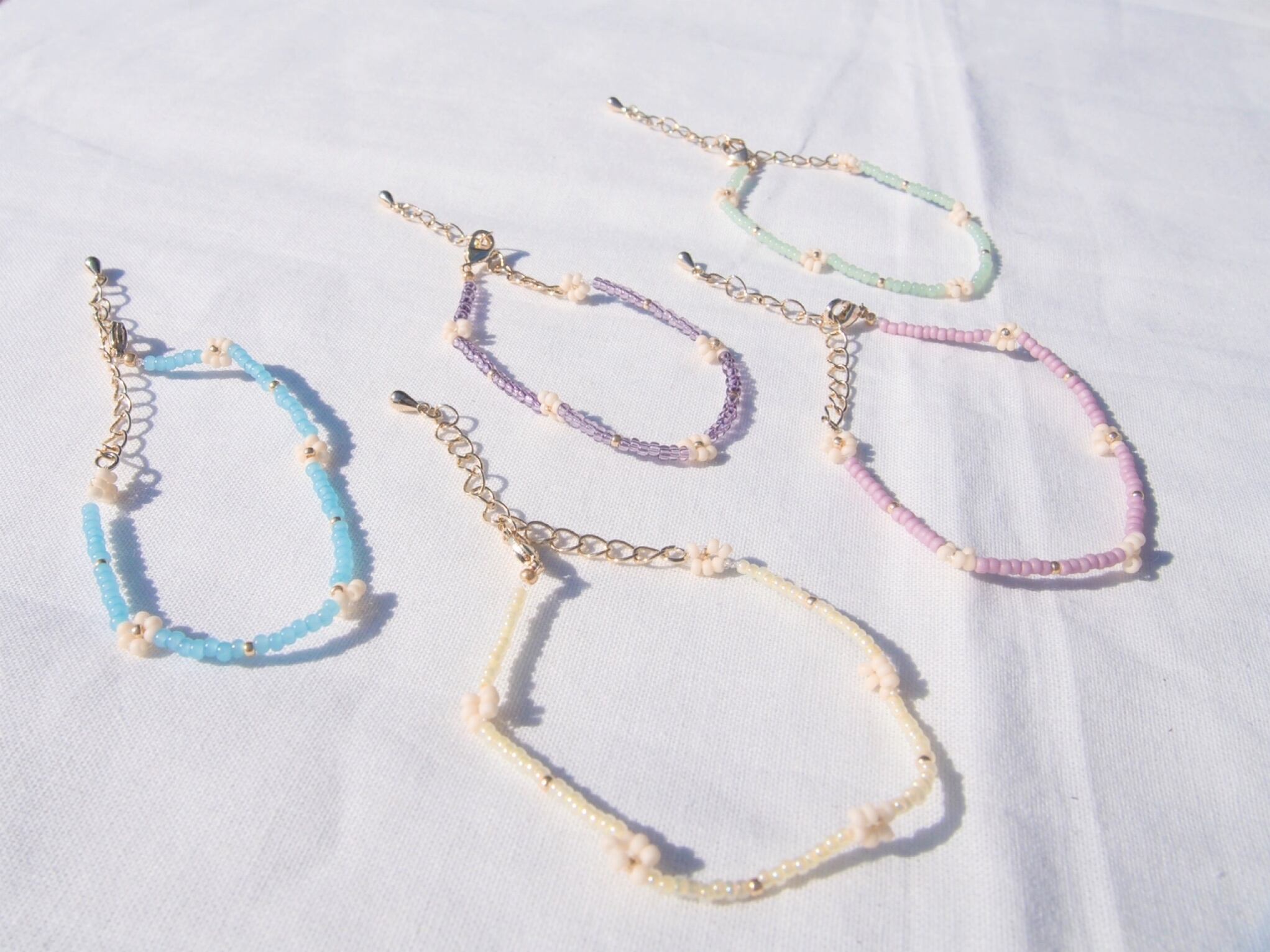 ビーズブレスレット ビーズリング カラフル 花 韓国 韓国雑貨 韓国アクセサリー 韓国ファッション 韓国インテリア ビーズアクセサリー ビーズ フラワーブレスレット お花 シンプルアクセサリー シンプル レトロ レトロアクセサリー デイジー マーガレット Twice BTS army kpop seventeen ブラックピンク セブチ バンタン アーミー カラット 透明感 ゴールドブレスレット お揃い ペアブレスレット プレゼント 大人可愛い お出かけ パーティー イベント 結婚式 ハロウィン クリスマス キラキラ ジョングク テテ アミボム