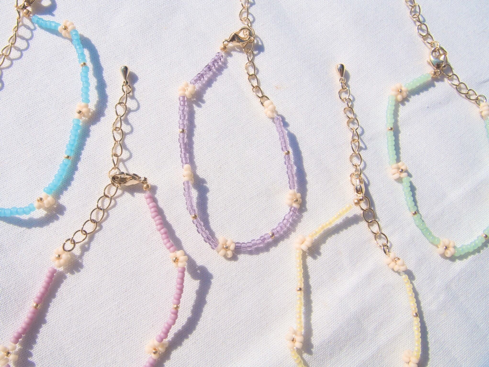 ビーズブレスレット ビーズリング カラフル 花 韓国 韓国雑貨 韓国アクセサリー 韓国ファッション 韓国インテリア ビーズアクセサリー ビーズ フラワーブレスレット お花 シンプルアクセサリー シンプル レトロ レトロアクセサリー デイジー マーガレット Twice BTS army kpop seventeen ブラックピンク セブチ バンタン アーミー カラット 透明感 ゴールドブレスレット お揃い ペアブレスレット プレゼント 大人可愛い お出かけ パーティー イベント 結婚式 キラキラ