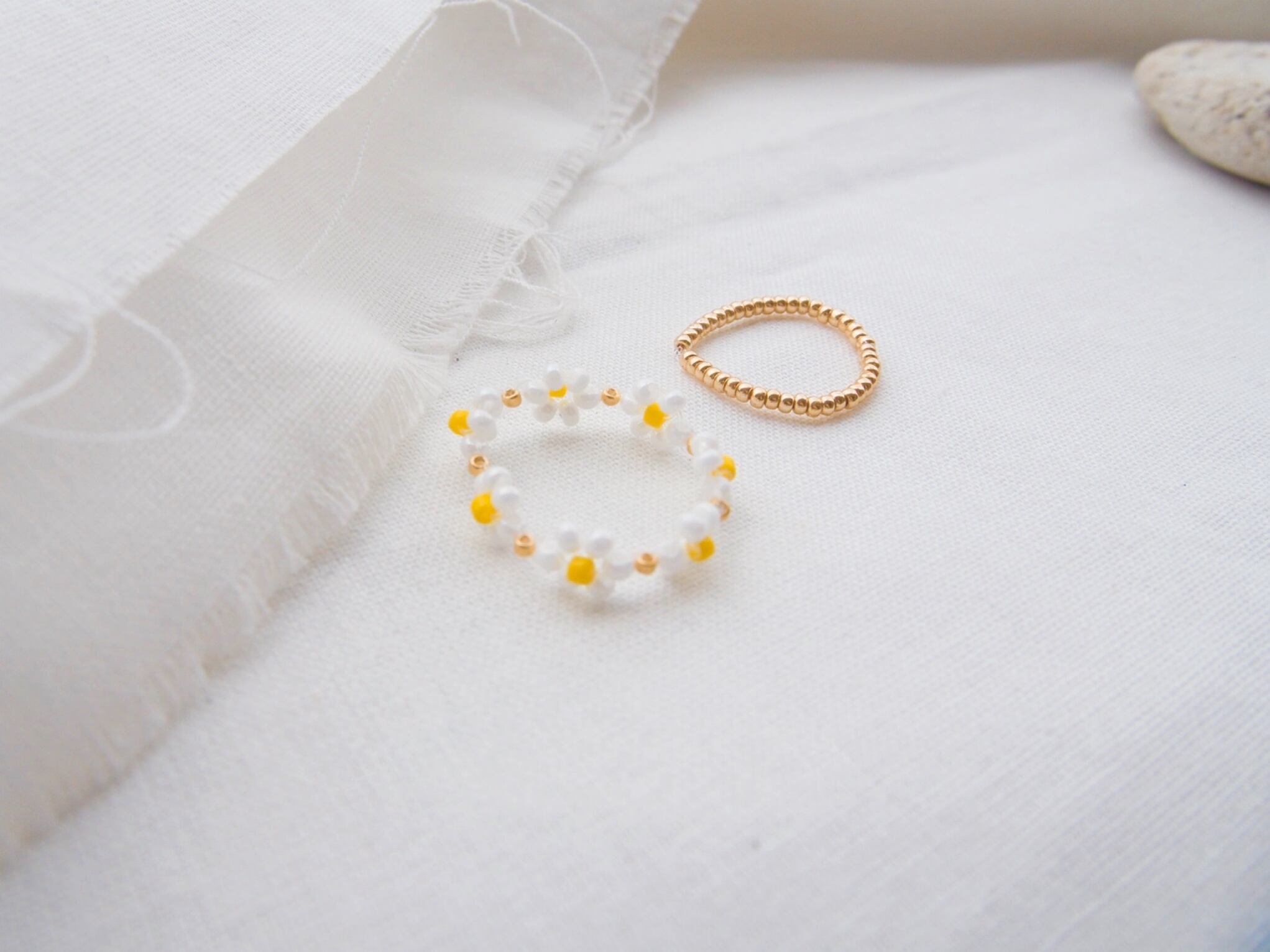 ビーズリング 《 white ・yellow 》 マーガレット 韓国