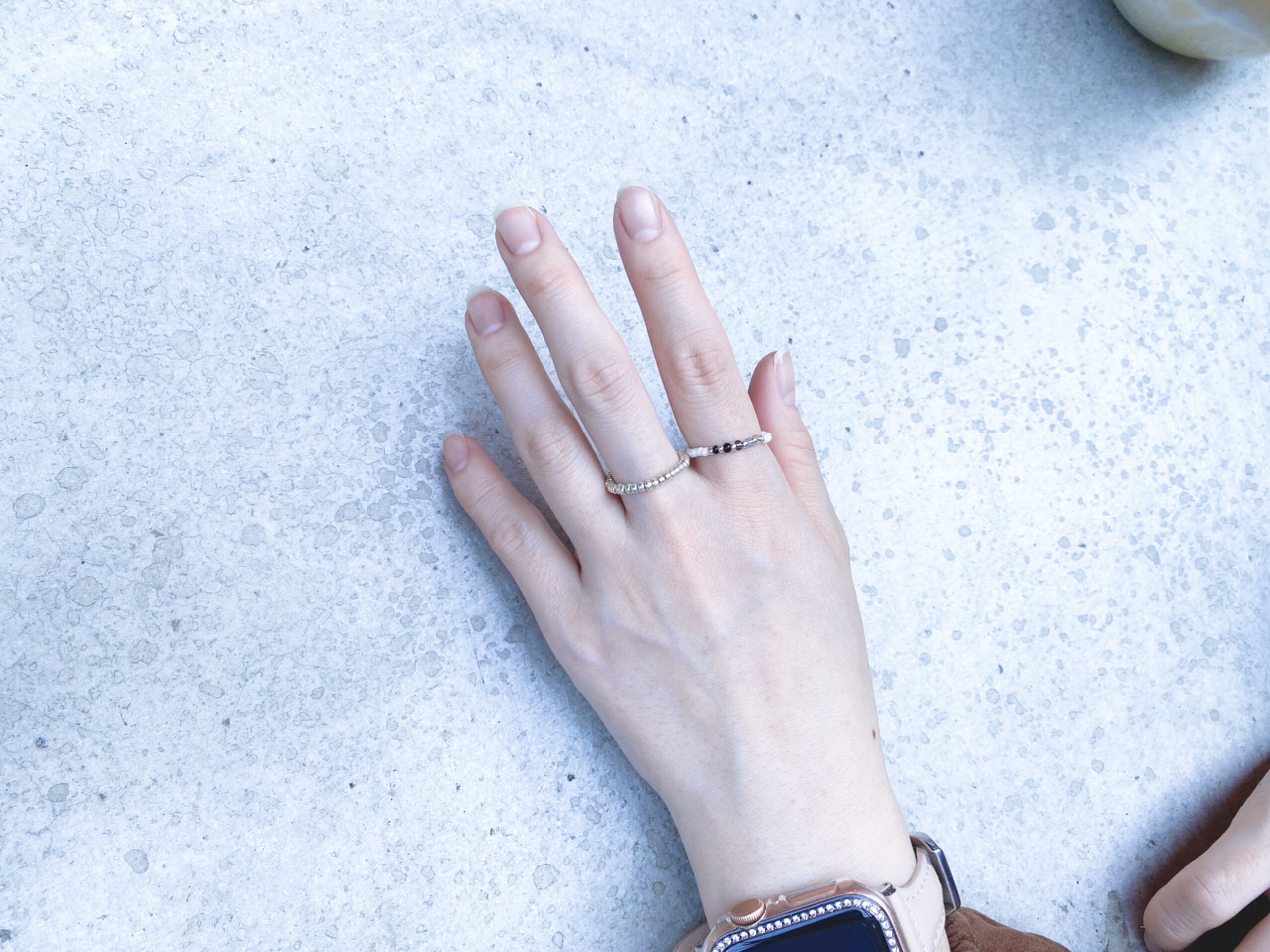♡シルバーリングを混ぜて華奢なデザインにしておりますので、大人の方にも普段遣いでご使用頂けると思います