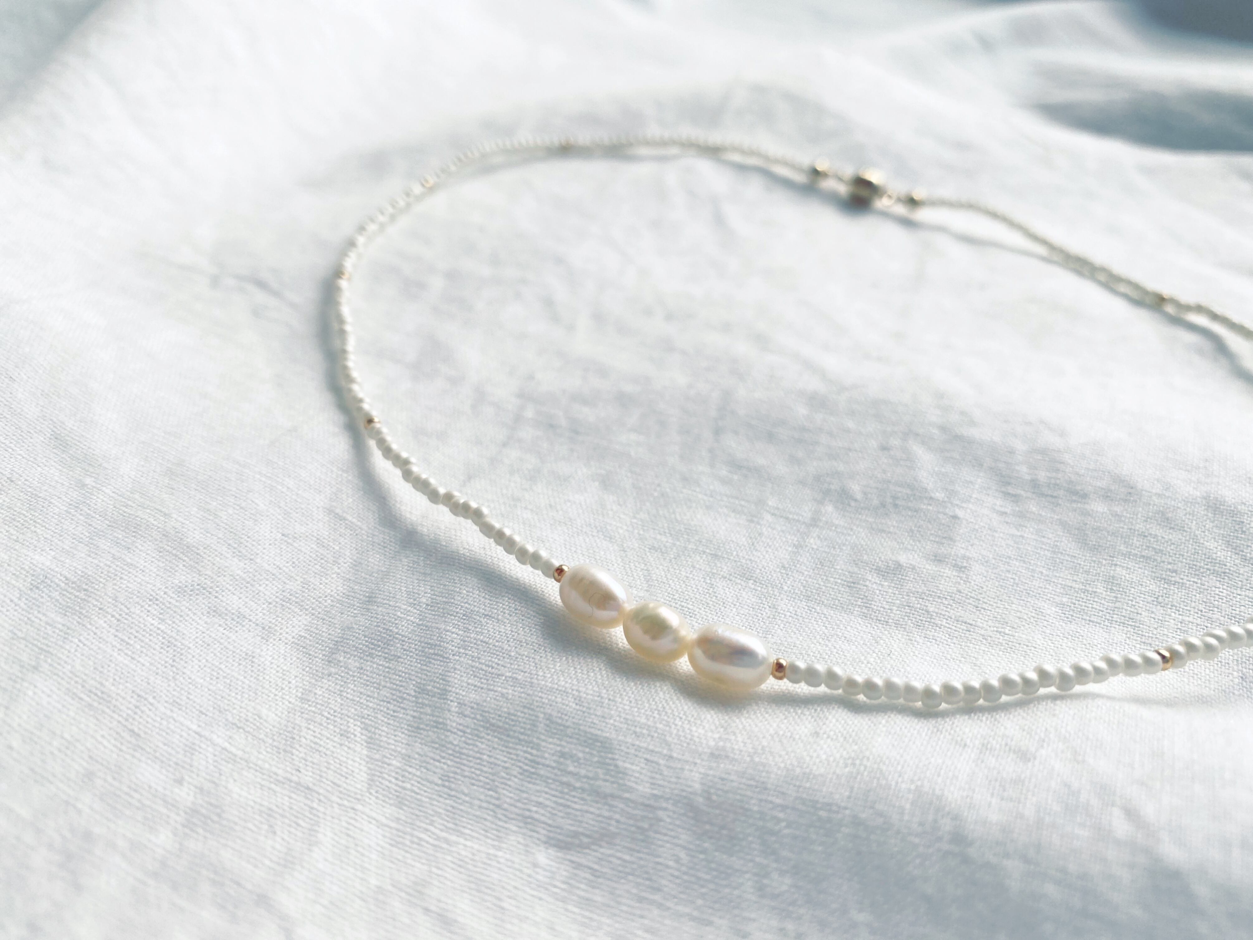 マグネット着脱 ビーズネックレス 《 white 3pearl 》 チョーカー